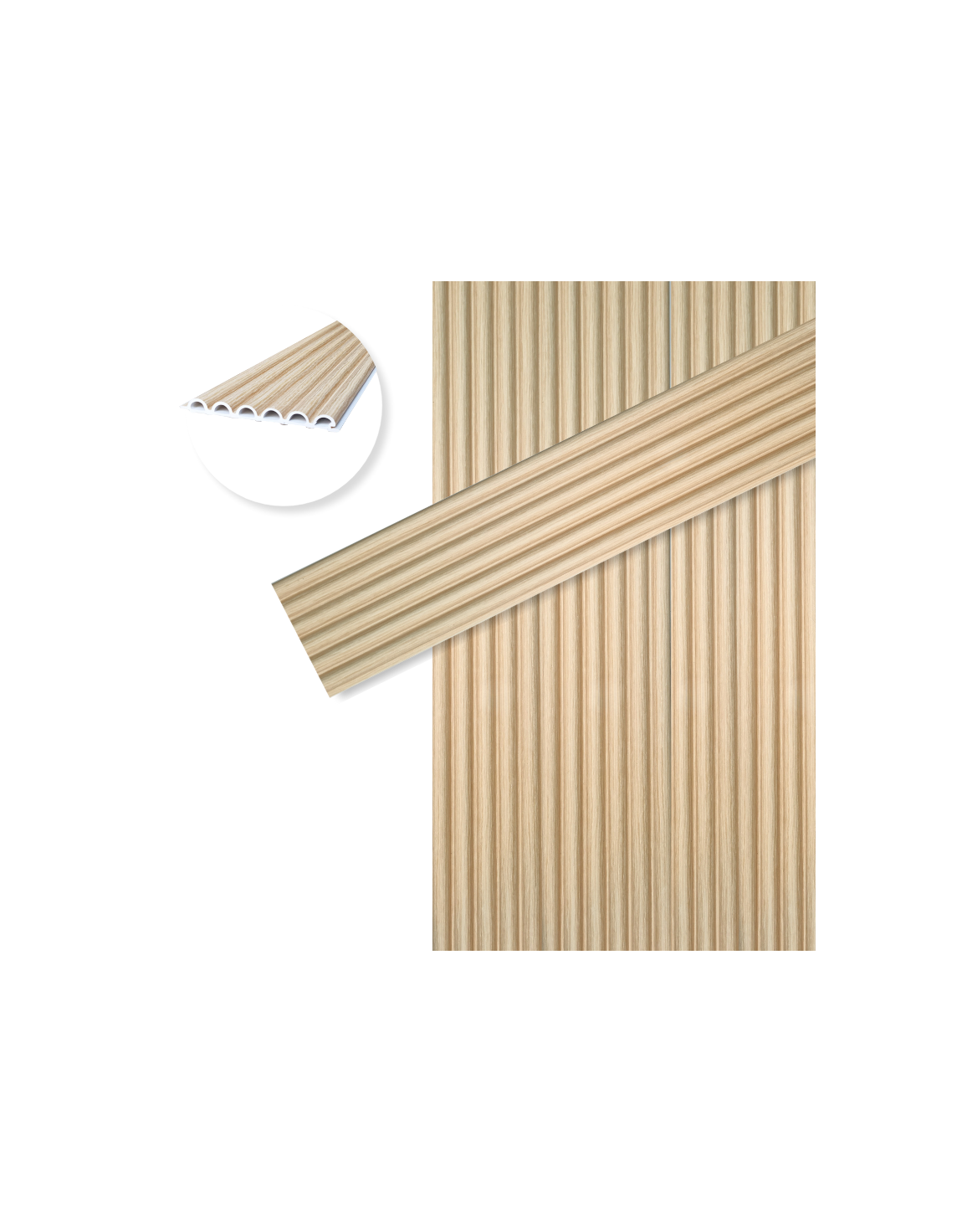 El revestimiento de pared WPC es la solución perfecta para darle un toque moderno y elegante a tus espacios. Podrás transformar cualquier habitación en un ambiente acogedor y sofisticado. Su diseño imita a la perfección la textura y tonalidad de la madera natural, brindando calidez y estilo a tus paredes.