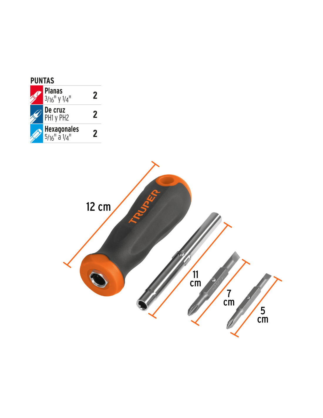 • 2 Puntas de cruz: PH1 y PH2
