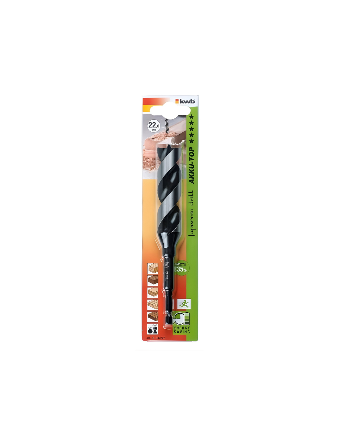 BROCA SALOMÓNICA JAPONESA 3-S, 165 MM. Barrena Japón, calidad industrial, moler punto de nitidez especial y filo cortante primario para la perforación absolutamente libre de desgarro en todas las maderas blandas y duras. Esta rutina punto especial se producen sólo pequeñas astillas de madera, que se eliminan rápidamente. Color negro, suelo desnudo, CV-acero, con vástago hexagonal 1/4″ según la norma ISO 1173, E 6.3, para agujeros precisos y sin esfuerzo con cuerda y máquinas cableadas. Ideal para todos los agujeros en las vigas de madera y todo tipo de madera. Especialmente adecuado para agujeros en ámbitos de las perspectivas para los carpinteros, diseño de interiores, carpintería.