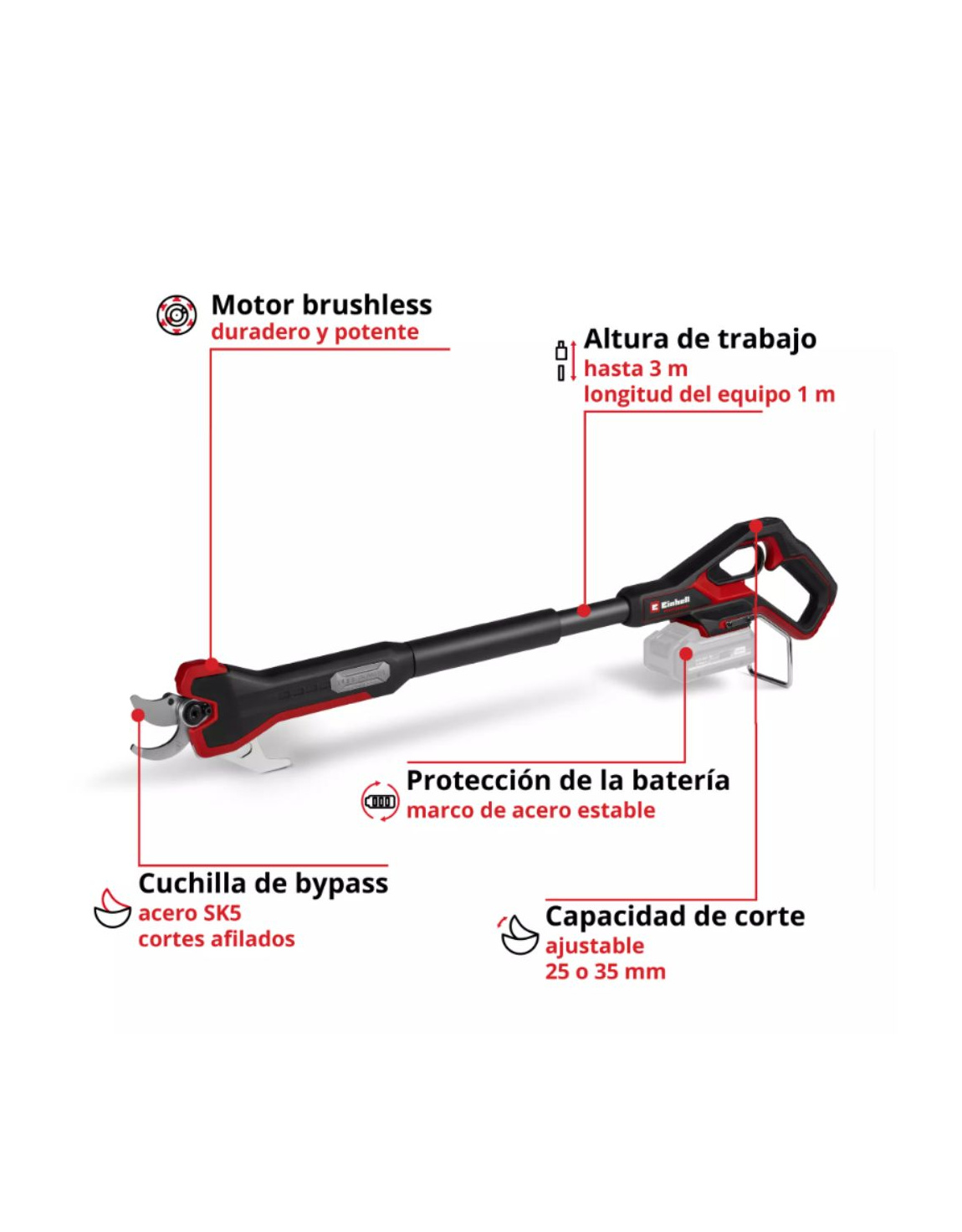 - Corte sin esfuerzo de ramas de hasta 35 mm de grosor