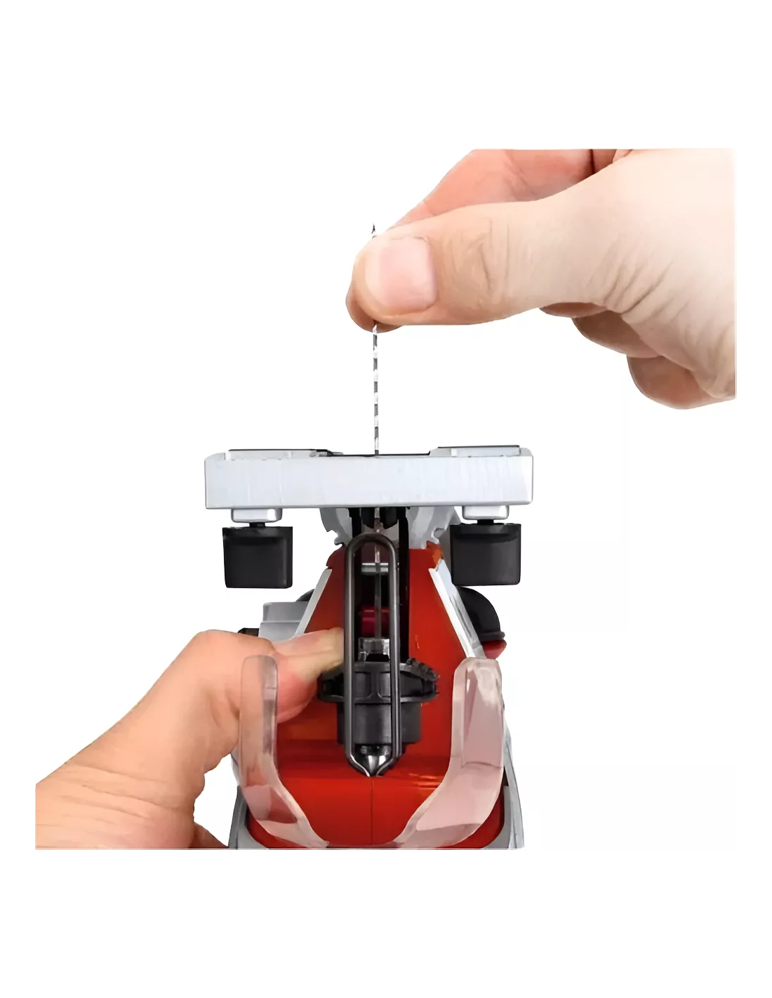 • Depósito para las hojas de sierra incorporado en la máquina