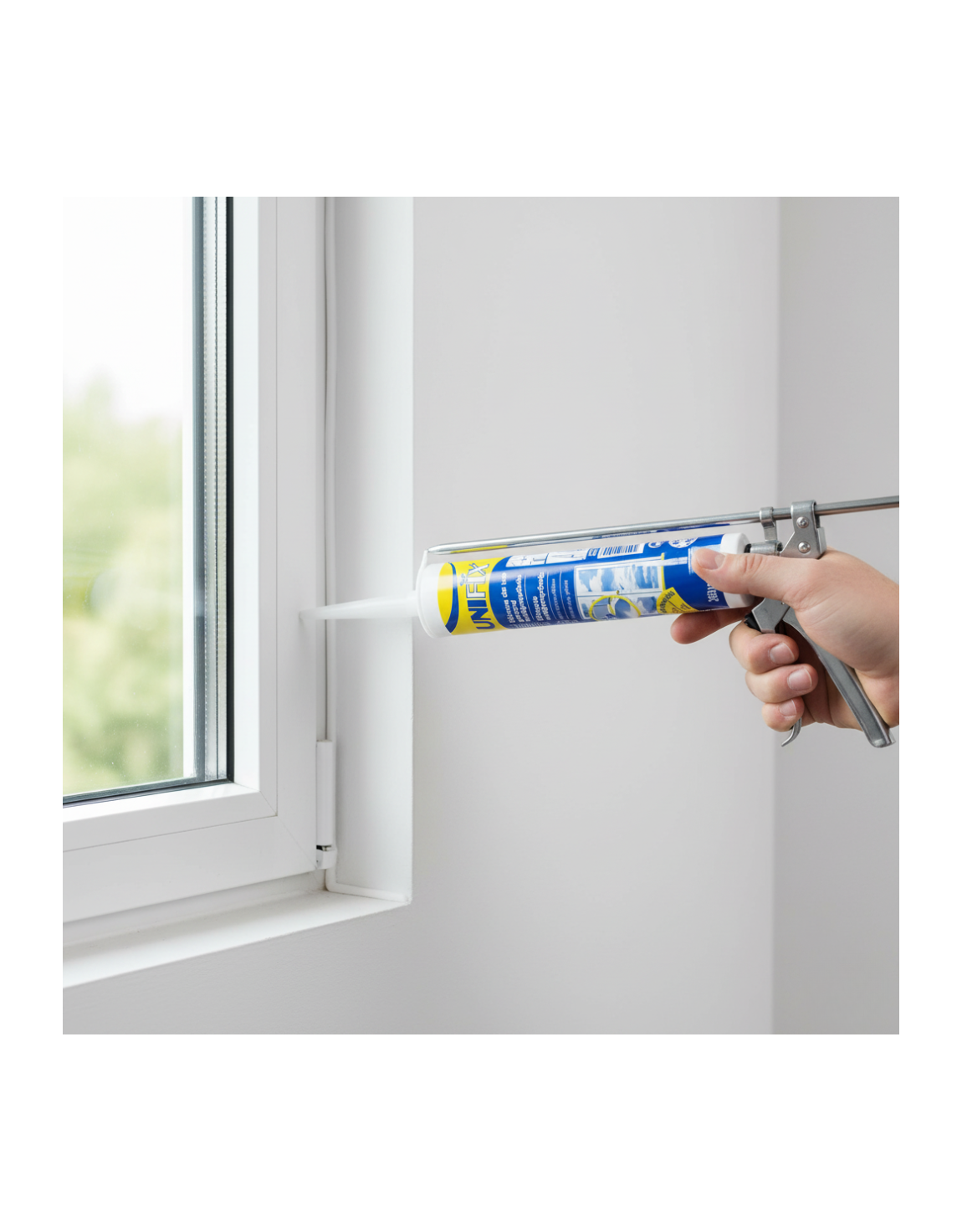 Juntas en marcos de ventanas, cabinas de ducha y sanitarios.